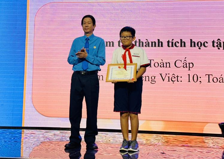 Chủ tịch Công đoàn ngành Y tế Đồng Nai Đàm Đức Chính tặng giấy khen cho các em học sinh