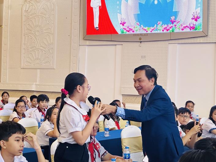 Các em học sinh tham gia giao lưu tại lễ tuyên dương