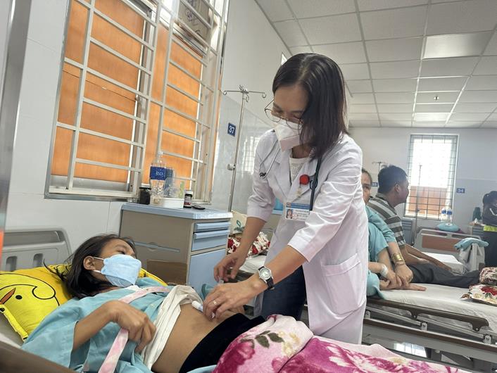 BS Thái Phạm Thị Hòa kiểm tra sức khỏe cho bệnh nhân trước khi thực hiện kỹ thuật lọc màng bụng