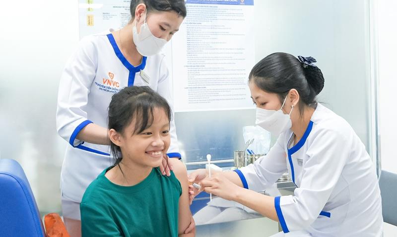 Một bé gái được tiêm vaccine phòng sốt xuất huyết tại hệ thống tiêm chủng VNVC