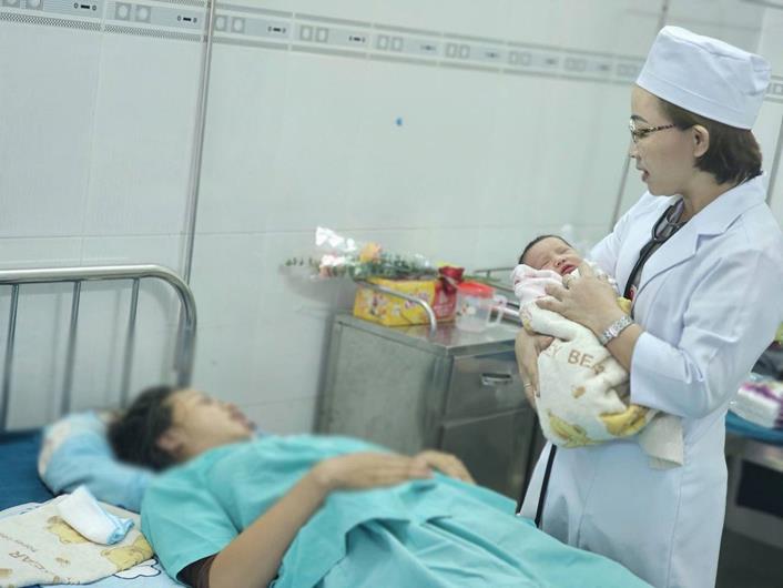 Bác sĩ Trung tâm Y tế huyện Trảng Bom thăm khám cho sản phụ và em bé sơ sinh.