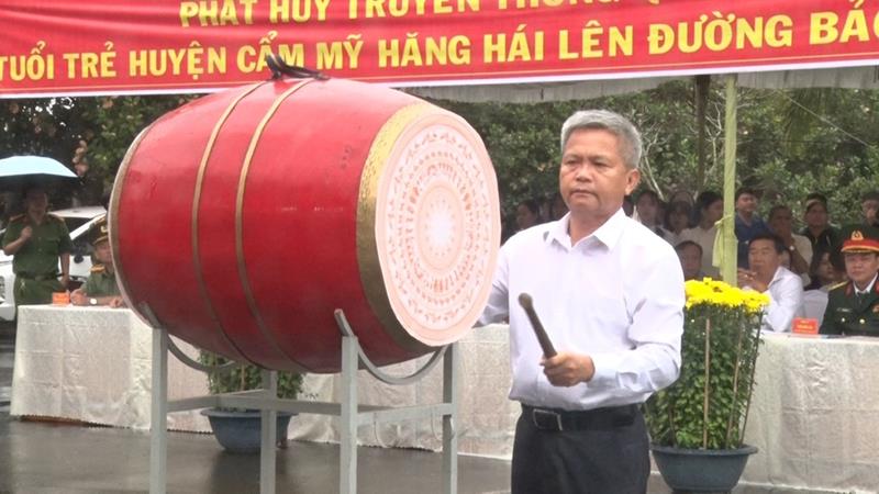 Chủ tịch UBND huyện Cẩm Mỹ Huỳnh Tấn Thìn gióng trống thúc giục thanh niên lên đường bảo vệ Tổ quốc