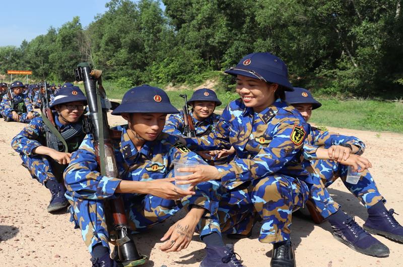 Chị Lê Thị Thanh Tâm cùng Phụ nữ Trung tâm Huấn luyện Vùng 2 thực hiện chương trình Tiếp sức mùa huấn luyện năm 2022