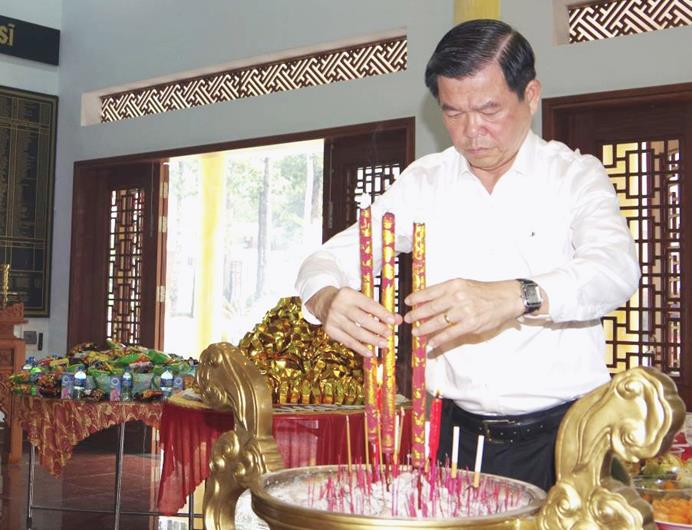 Bí thư Tỉnh ủy, Bí thư Đảng ủy Quân sự tỉnh dâng hương tại Nhà tưởng niệm các liệt sĩ trong dịp đặt tượng Đại tướng Võ Nguyên Giáp