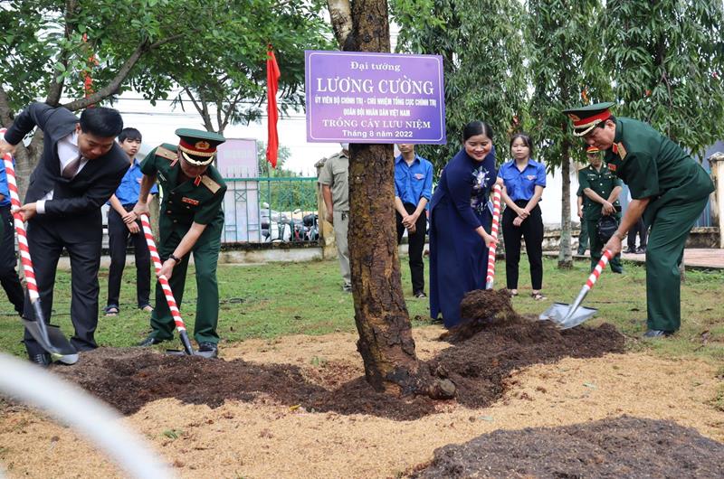 Đại tướng Lương Cường, lãnh đạo Quân đoàn 4 và tỉnh Bình Phước trồng cây lưu niệm tại khu di tích Chiến thắng Chốt chặn Tàu Ô