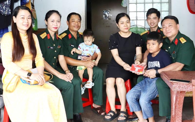 Trước đó, đoàn do Đại tá Trương Ngọc Hải, Phó Chủ nhiệm Chính trị, thừa ủy quyền của Thủ trưởng Bộ CHQS tỉnh đã đến tận nhà trao sổ tiết kiệm (10 triệu đồng/sổ) trong Chương trình “Mẹ đỡ đầu” cho cháu Phạm Xuân Phúc, con của Thiếu tá chuyên nghiệp Phạm Xuân Trường đang công tác tại Văn phòng Bộ CHQS tỉnh.