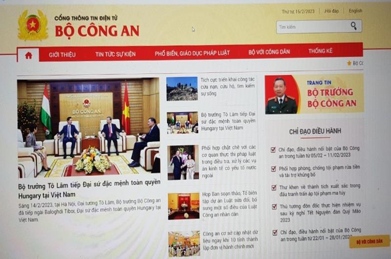 Giao diện mới Cổng Thông tin điện tử Bộ Công an