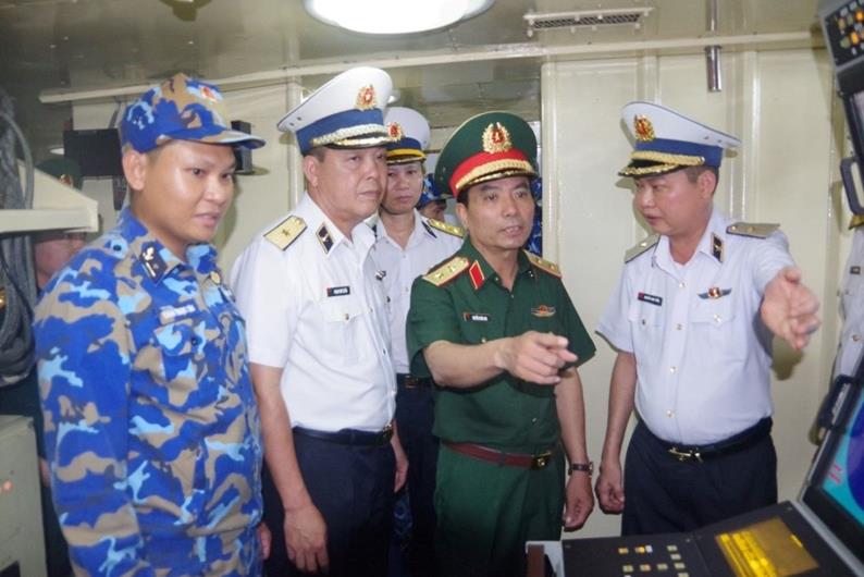 Cùng dự kiểm tra có chuẩn đô đốc Phạm Như Xuân, Phó tư lệnh Hải quân; chuẩn đô đốc Nguyễn Anh Tuấn, Tư lệnh Vùng 2 Hải quân và các cơ quan chức năng.