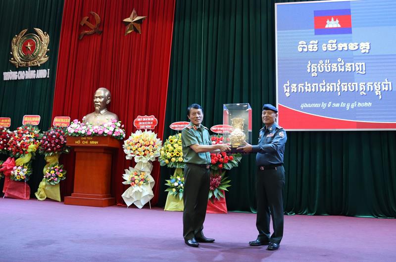 TTĐT - Trường Cao đẳng An ninh nhân dân (ANND) I - cơ sở 2, đóng tại P.Tam Phước, TP.Biên Hòa vừa tổ chức khai giảng lớp bồi dưỡng nghiệp vụ cho 80 học viên là lực lượng Hiến binh Quân đội Hoàng gia Campuchia.