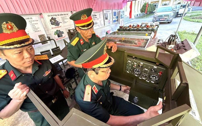 Thủ trưởng Binh chủng Tăng thiết giáp kiểm tra và tham quan mô hình học cụ của Lữ đoàn 22