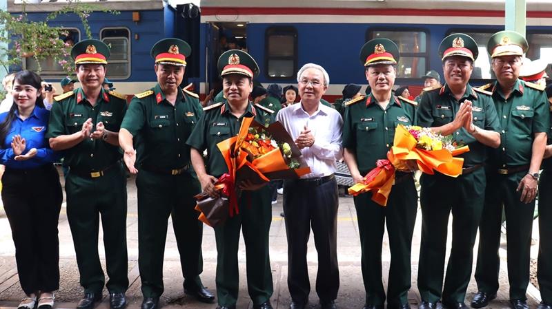 Đón đoàn tại ga Biên Hòa có các đồng chí: Thiếu tướng Huỳnh Tấn Hùng, Phó Chủ nhiệm Tổng cục Hậu cần kỹ thuật; Đại tá Lê Xuân Bình, Phó Tư lệnh Quân khu 7; Ủy viên Ban Thường vụ Tỉnh ủy, Chủ tịch MTTQ Việt Nam tỉnh Cao Văn Quang; lãnh đạo các sở, ngành và các lực lượng đoàn viên thanh niên, hội viên phụ nữ, các đơn vị QĐND Việt Nam đóng trên địa bàn.