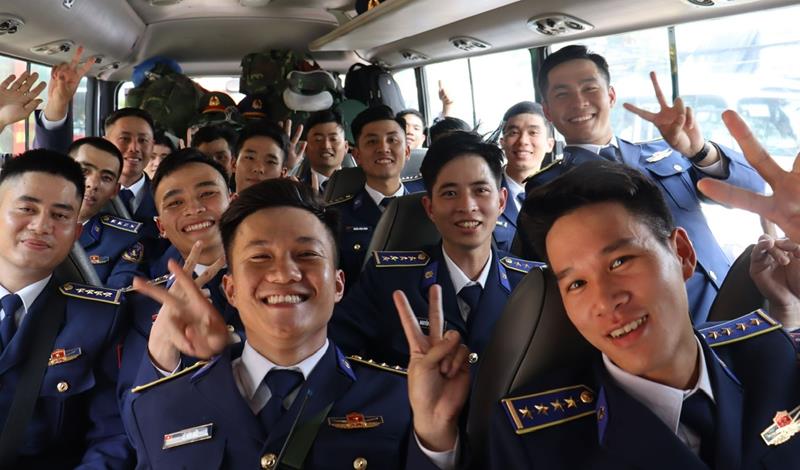Khối Cảnh sát biển hào hứng lên xe về đơn vị