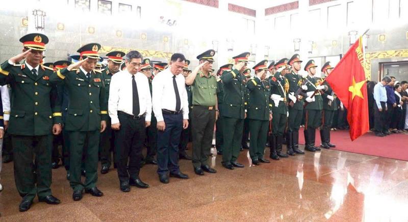 Phó Bí thư Tỉnh ủy, Chủ tịch UBND tỉnh Võ Tấn Đức (thứ tư trái qua) dự lễ truy điệu