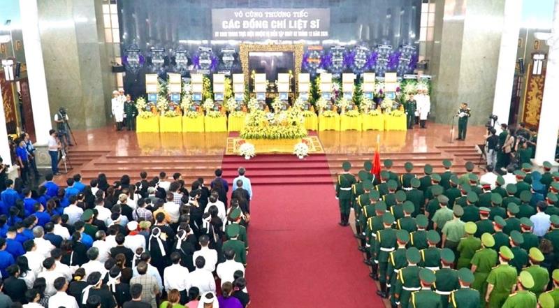 Quang cảnh buổi lễ truy điệu và tiễn đưa 12 liệt sĩ về quê hương