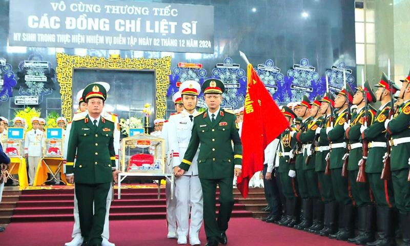 Trong điếu văn tại lễ, Thiếu tướng Trần Vinh Ngọc khẳng định: “Sự hy sinh của các đồng chí đã thể hiện tinh thần dũng cảm, ý chí quyết tâm, không quản ngại khó khăn, gian khổ, hiểm nguy trong thực hiện nhiệm vụ diễn tập; để sẵn sàng các phương án tác chiến bảo vệ sự bình yên cho Tổ quốc và cuộc sống ấm no, hạnh phúc của Nhân dân. Trong giờ phút tiễn biệt các liệt sĩ về nơi an nghỉ cuối cùng, Quân ủy Trung ương, Bộ Quốc phòng, Thường vụ Đảng ủy, Bộ Tư lệnh Quân khu 7; cấp ủy chính quyền, Nhân dân các địa phương và toàn thể cán bộ, chiến sĩ xin được chia sẻ nỗi mất mát to lớn không thể bù đắp được với gia đình các liệt sĩ. Xin kính cẩn nghiêng mình vĩnh biệt các đồng chí thân yêu của chúng ta”.