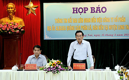 Đây là khẳng định của UBND tỉnh Đồng Nai tại buổi họp báo vừa qua về việc Công ty Alibaba quảng cáo, phân lô, bán nền không đúng sự thật tại huyện Long Thành. Cuộc họp do Trưởng ban Tuyên giáo Tỉnh ủy Thái Bảo và Phó chủ tịch UBND tỉnh Võ Văn Chánh chủ trì.