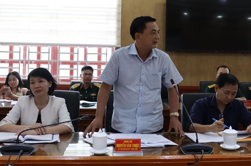 Bí thư Huyện ủy Vĩnh Cửu Nguyễn Văn Thuộc trao đổi trong hội nghị