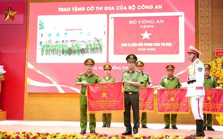 Lãnh đạo Bộ Công an trao Cờ đơn vị dẫn đầu phong trào thi đua “Vì an ninh Tổ quốc” cấp cơ sở năm 2025 cho Công an xã Đồng Phú.