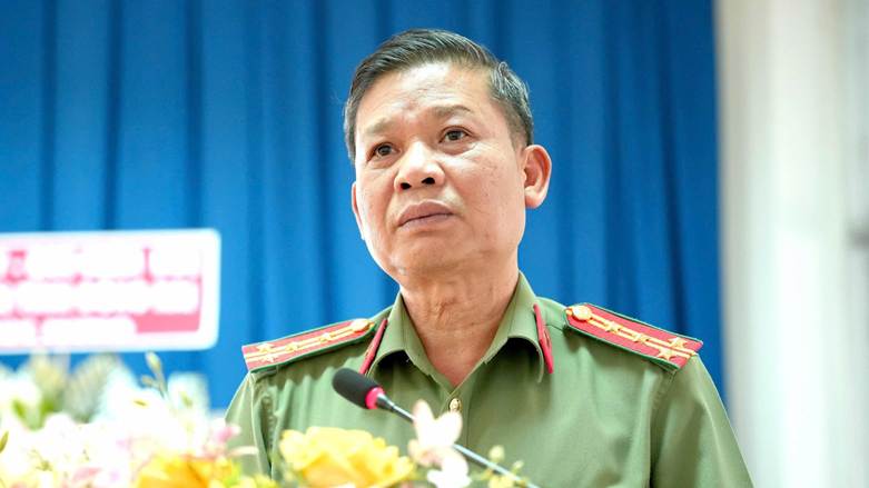 Đại tá Dương Văn Mạnh, Phó bí thư Đảng ủy, Phó giám đốc Công an tỉnh phát biểu chỉ đạo hội nghị