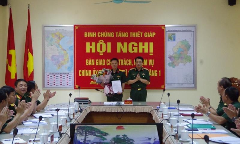(CTT- Đồng Nai) – Phát biểu tại hội nghị bàn giao chức trách, nhiệm vụ chính ủy Trường Hạ sĩ quan xe tăng I, Binh chủng Tăng thiết giáp (TTG), đóng tại H.Long Thành vào chiều tối 15-8, Thiếu tướng Nguyễn Đức Dinh, Bí thư Đảng ủy, Chính ủy Binh chủng TTG chúc mừng Đại tá Hà Xuân Hiệp được bổ nhiệm giữ chức vụ Bí thư Đảng ủy, Chính ủy nhà trường.