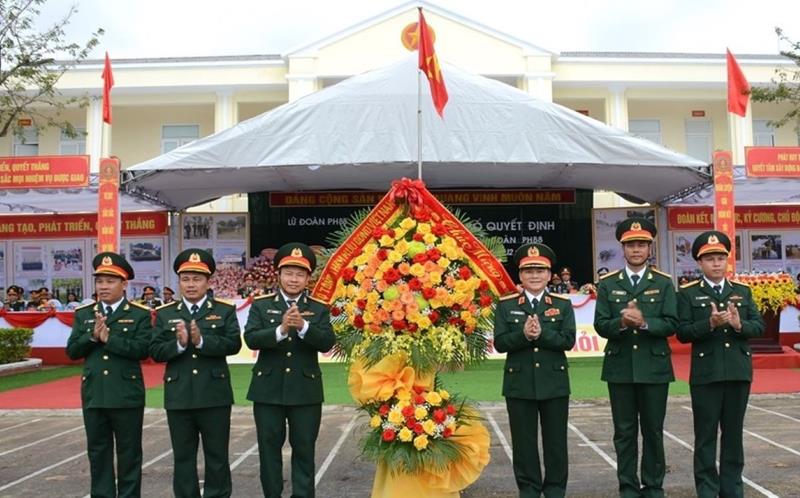 Trung tướng Phạm Trường Sơn tặng hoa chúc mừng Lữ đoàn 88 trong lễ công bố thành lập- Ảnh ĐVCC