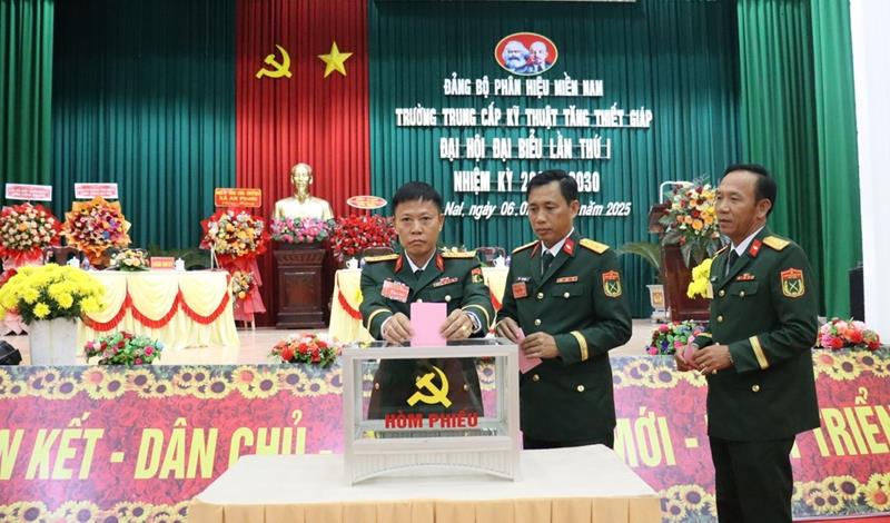 (CTT-Đồng Nai) - Sau hai ngày làm việc khẩn chương, nghiêm túc, Đại hội đại biểu lần thứ I nhiệm kỳ 2025-2030 Đảng bộ phân hiệu Trường Trung cấp Kỹ thuật Tăng thiết giáp (TTG) phân hiệu miền Nam, thuộc Binh chủng TTG, đóng tại huyện Long Thành đã thành công tốt đẹp và bế mạc vào chiều 7-5.