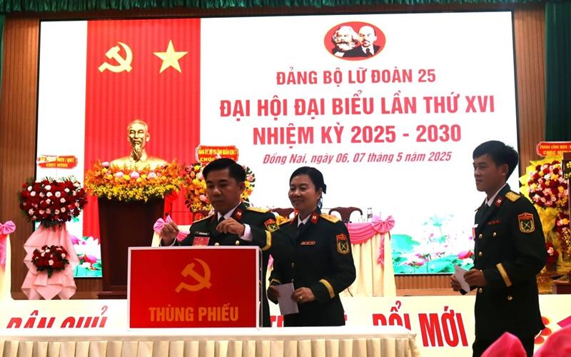 (CTT-Đồng Nai) - Sau hai ngày làm việc khẩn chương, nghiêm túc, đúng quy định, Đại hội đại biểu Đảng bộ Lữ đoàn 25, Quân khu 7, đóng tại thành phố Biên Hòa thành công tốt đẹp và bế mạc chiều tối 7-5.