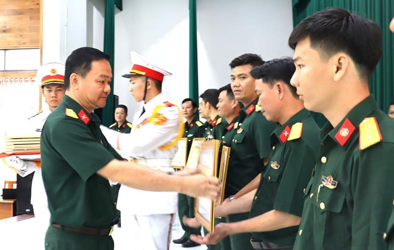 Đại tá Bùi Đăng Ninh, Chính ủy Bộ CHQS tỉnh khen thưởng các tập thể, cá nhân