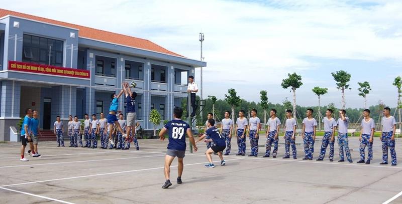 Bộ đội Trung tâm Bảo đảm kỹ thuật Vùng 2 Hải quân đóng tại huyện Nhơn Trạch tham gia bóng chuyền