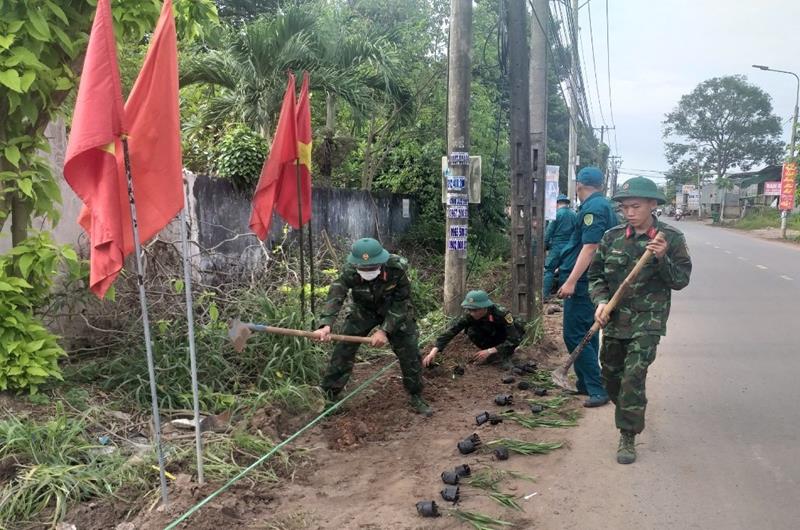 Cán bộ chiến sĩ Đoàn C6 (Bộ Quốc phòng) tham gia làm sạch vệ sinh môi trường khu vực thị trấn Long Thành sau hưởng ứng lễ phát động làm cho thế giới sạch hơn