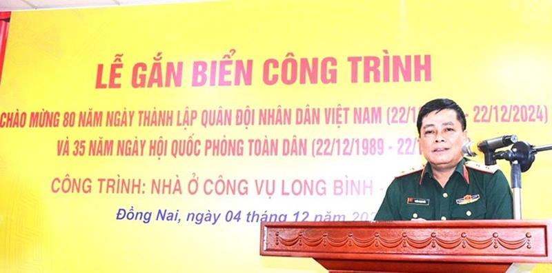 Phát biểu tại buổi lễ, Trung tướng Trần Minh Đức nhấn mạnh: Nhà ở công vụ Long Bình - Đồng Nai khi đưa vào sử dụng sẽ giải quyết nhu cầu về nhà ở cho 297 cán bộ, nhân viên (đa phần là sĩ quan trẻ, mới lập gia đình, kinh tế khó khăn); đồng thời, đây cũng là hoạt động ý nghĩa chào mừng kỷ niệm 80 năm Ngày thành lập Quân đội nhân dân Việt Nam, 35 năm Ngày hội Quốc phòng toàn dân (22-12).