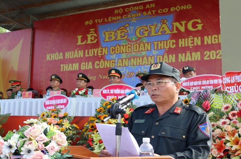 Đến dự và phát biểu chỉ đạo tại lễ bế giảng, Thiếu tướng Nguyễn Thanh Bảnh, Phó Tư lệnh Cảnh sát cơ động đánh giá cao kết quả huấn luyện chiến sĩ mới tại Trung đoàn Cảnh sát cơ động Đông Nam bộ. Đồng chí đề nghị, phát huy những kết quả vừa qua, đơn vị tiếp tục nâng cao chất lượng huấn luyện mọi mặt; quan tâm làm tốt công tác giáo dục chính trị tư tưởng cho cán bộ chiến sĩ. Đối với cán bộ làm công tác huấn luyện tiếp tục nâng cao chuyên môn nghiệp vụ; kỹ, chiến thuật chiến đấu để đạt kết quả cao trong những mùa huấn luyện sau.