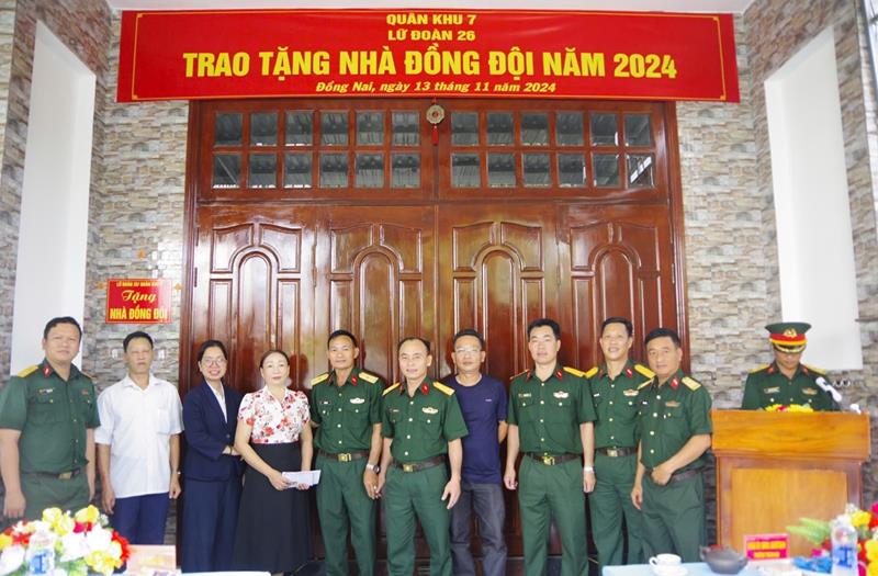(CTT- Đồng Nai) - Đảng ủy, Chỉ huy Lữ đoàn 26, Quân khu 7, đóng tại thành phố Biên Hòa vừa tổ chức trao 3 căn nhà đồng đội, nhà tình nghĩa quân dân cho các gia đình khó khăn về nhà ở.