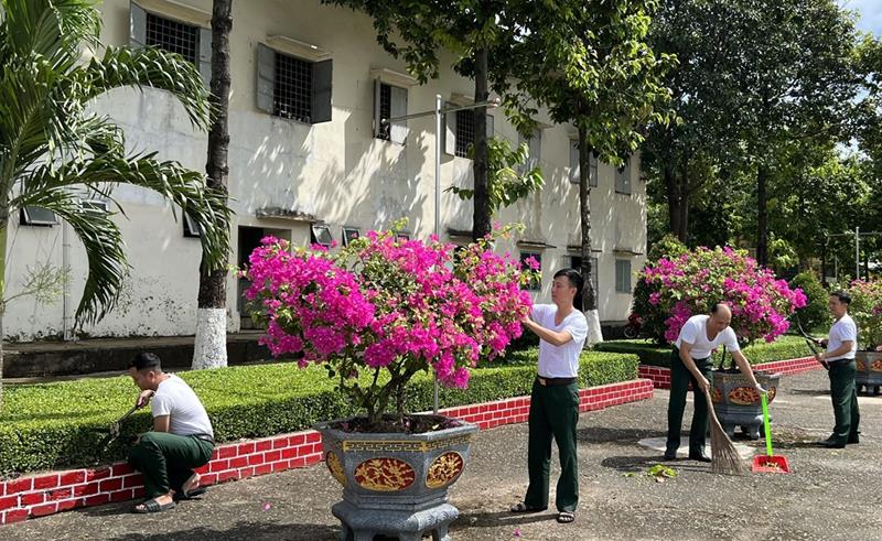 Cán bộ, quân nhân Trung đoàn luôn quan tâm xây dựng cảnh quan môi trường chính quy, mẫu mực