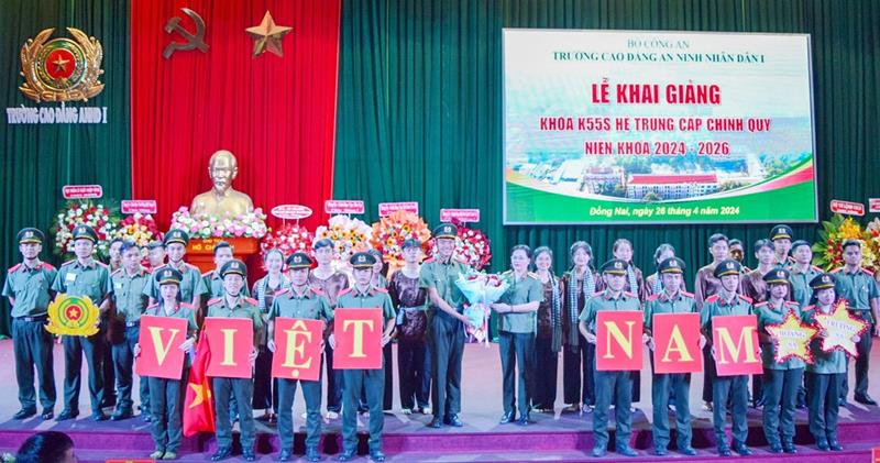 (CTT- Đồng Nai) – Ngày 26-4, Trường Cao đẳng An ninh nhân dân (ANND) I cơ sở tại huyện Long Thành, tỉnh Đồng Nai tổ chức lễ khai giảng Khóa K55S hệ trung cấp chính quy niên khóa 2024-2026 diễn ra ngày 26-4-2024. Quyền chủ tịch UBND tỉnh Võ Tấn Đức gửi lẵng hoa chúc mừng; dự lễ khai giảng có các đơn vị thuộc Khối thi đua 14 tỉnh Đồng Nai.