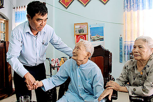 Cán bộ phường Trảng Dài đến thăm cụ Nguyễn Viết Thân.