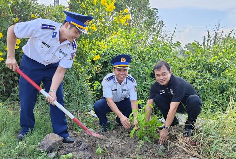 (CTT- Đồng Nai) - Ngày 16-5, tại xã Phú Hữu, huyện Nhơn Trạch, Đoàn Trinh sát số 2 (TSS2), Cảnh sát biển Việt Nam phối hợp địa phương ra quân làm dân vận, trồng cây xanh mừng 134 năm Ngày Sinh nhật Bác.
