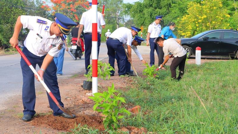 Sau lễ phát động, cán bộ, chiến sĩ, đoàn viên thanh niên đơn vị và địa phương ra quân dọn dẹp vệ sinh môi trường; trồng 1 ngàn cây chuông vàng dọc tuyến đường Phan Văn Đáng dài hơn 7km.