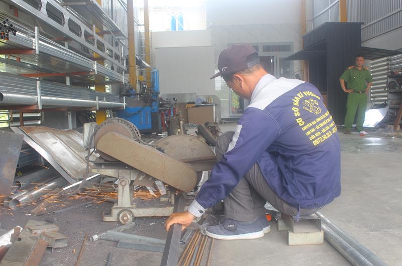 Tiếng hàn xì xen lẫn tia sáng phát ra từ những chiếc máy hàn, tiếng khoan cắt sắt liên tục vang lên khiến cho không khí tại xưởng làm việc của anh Tài rất tất bật. Mỗi người một tay, gần chục nhân công chăm chú làm việc mà không để ý đã đến giờ nghỉ trưa. Nhiều người chia sẻ, trong lúc kinh tế khó khăn, có công việc để làm là thấy vui lắm rồi nên đôi khi quên đi sự mệt mỏi hay nắng nóng oi bức của những ngày tháng 4.