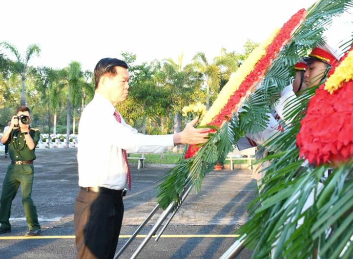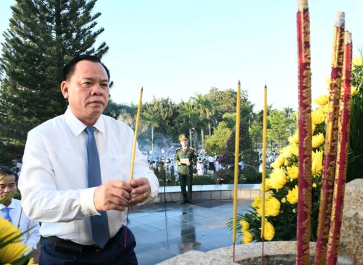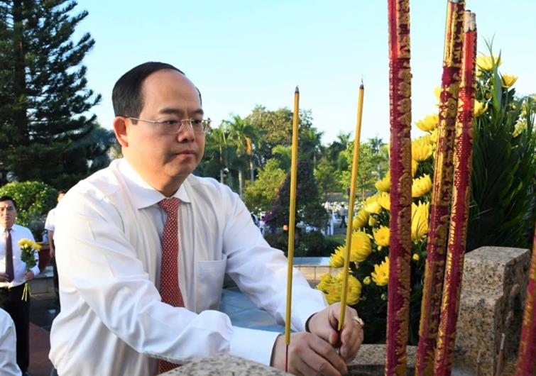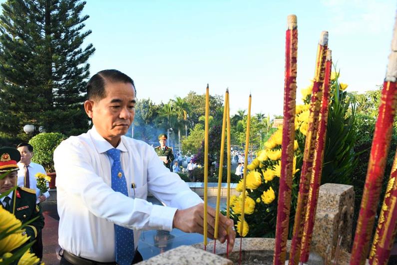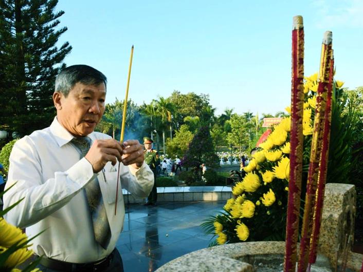 Chủ tịch UBND tỉnh Võ Tấn Đức dâng hương tại đài tưởng niệm liệt sĩ