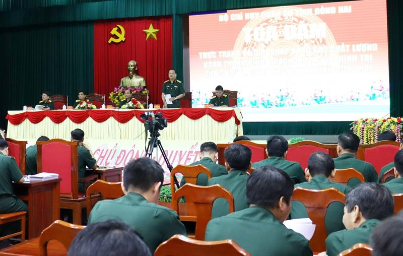 (CTT- Đồng Nai) – Ngày 31-10, Đảng ủy, Bộ Chỉ huy quân sự (CHQS) chủ trì tọa đàm có chủ đề: “Thực trạng và giải pháp nâng cao chất lượng hoàn thành chức trách, nhiệm vụ chính trị của sĩ quan, quân nhân chuyên nghiệp (QNCN) trong lực lượng vũ trang (LLVT) tỉnh Đồng Nai”.