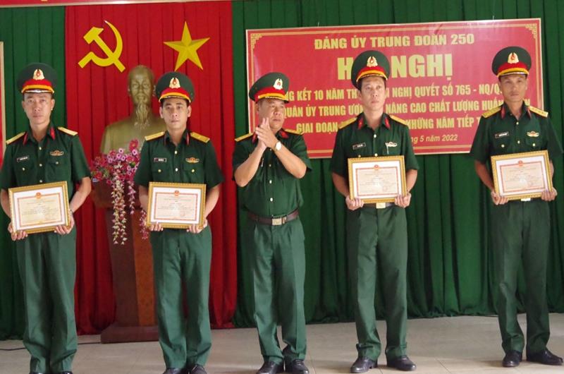 Đảng ủy, chỉ huy Trung đoàn 250 khen thưởng các tập thể, cá nhân có thành tích thực hiện nghị quyết