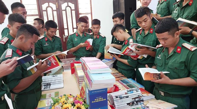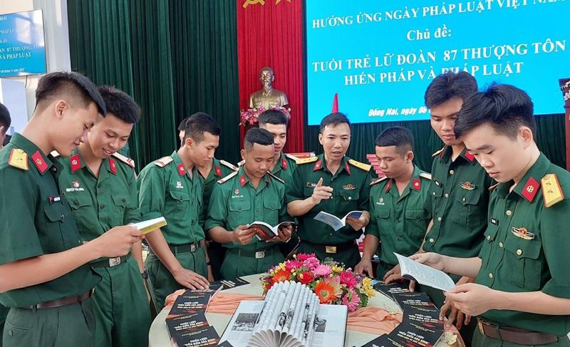 Cán bộ, chiến sĩ Lữ đoàn 87, đóng tại H.Nhơn Trạch tham quan triển lãm sách hưởng ứng Ngày Pháp luật