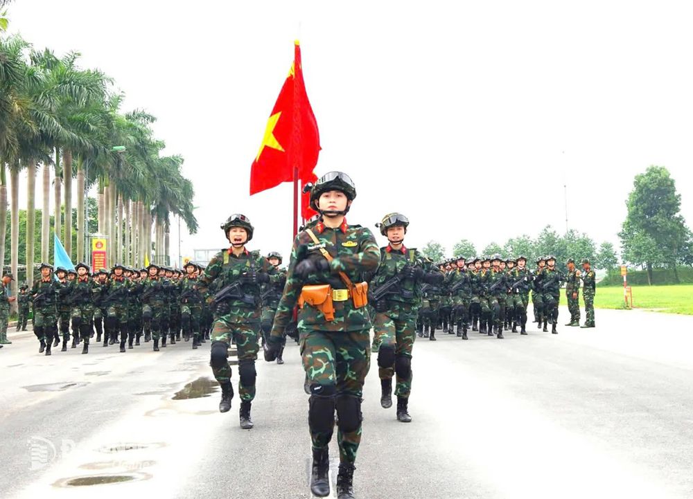 Khối Nữ quân nhân miền Nam do Quân khu 7 đảm nhiệm nỗ lực tập luyện trong mọi điều kiện thời tiết. Ảnh: Xuân Hoan