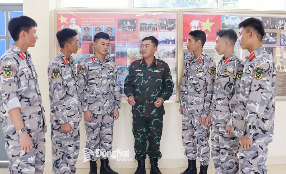 Khối Đặc nhiệm dù (trong đó có 36 chàng trai đến từ tỉnh Đồng Nai) luôn thể hiện quyết tâm cao. Trong ảnh: Phút nghỉ ngơi giao lưu tại Phòng Hồ Chí Minh, Trung tâm Huấn luyện dã ngoại Trường Sĩ quan Lục quân 1. Ảnh: Nguyệt Hà