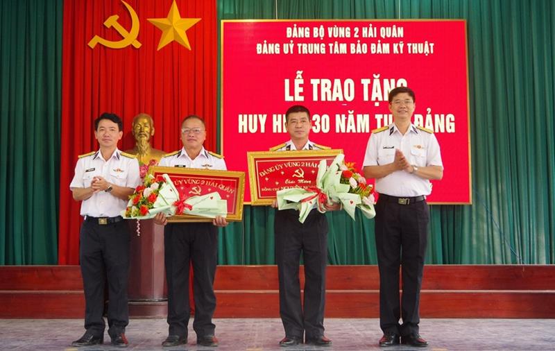 Dịp này, Đảng ủy Trung tâm Bảo đảm kỹ thuật trao tặng Huy hiệu 30 năm tuổi Đảng cho Trung tá Bùi Huy Tân, Chi bộ Đội Bảo vệ, Đảng bộ Phòng Tham mưu và Trung tá chuyên nghiệp Nguyễn Ngọc Tuyến, Chi bộ Đội xe, Đảng bộ Trung tâm Bảo đảm kỹ thuật.