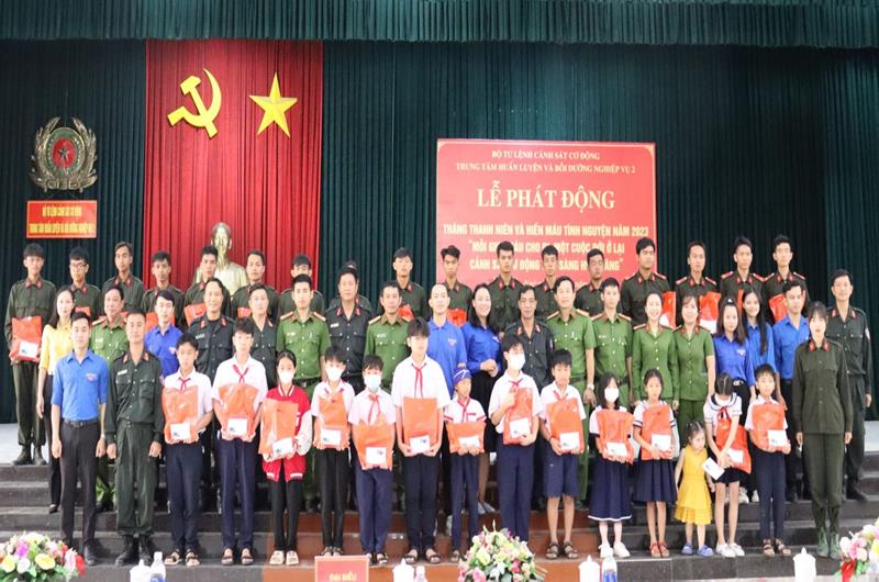 Với chủ đề: “Mỗi giọt máu cho đi, một cuộc đời ở lại, cảnh sát cơ động sẵn sàng hiến dâng”, thủ trưởng đơn vị và cán bộ, đoàn viên thanh niên đã trao tặng học bổng cho sinh viên khó khăn nỗ lực học tốt và 33 học sinh khó khăn tại một số trường học trên địa bàn đóng quân tại H.Long Thành.