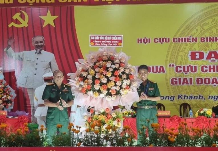 Chủ tịch Hội Cựu chiến binh tỉnh tặng hoa chúc mừng Đại hội. Ảnh: Hội CCB tỉnh