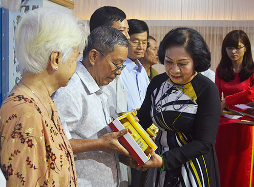 Chủ tịch Liên hiệp các tổ chức hữu nghị tỉnh Bùi Ngọc Thanh trao quà tri ân các thương binh, gia đình liệt sĩ.