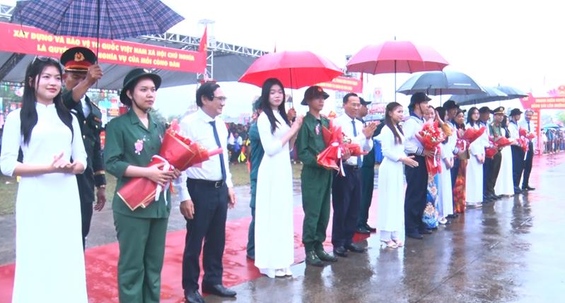 Phó Chủ tịch UBND tỉnh Nguyễn Sơn Hùng tặng hoa cho các tân binh lên đường nhập ngũ
